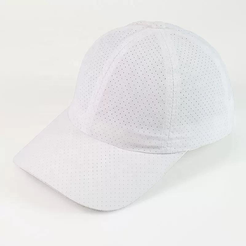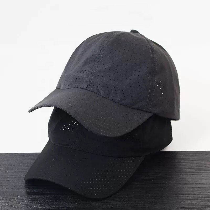 Gorra para correr informal de poliéster de 6 paneles de secado rápido OEM, corte láser, agujero perforado, perforado, Unisex, resistente a la pesca en la playa al aire libre