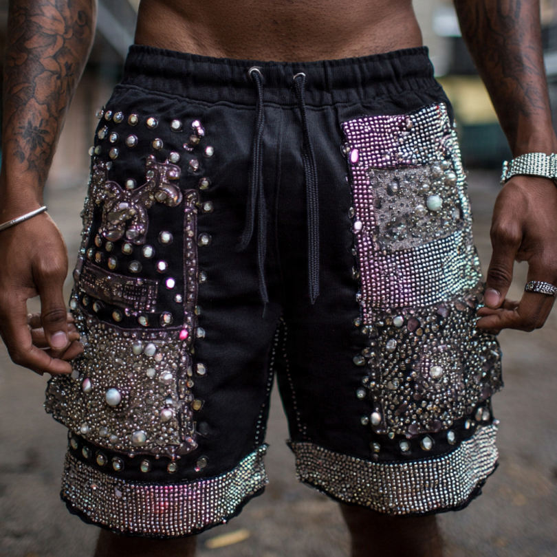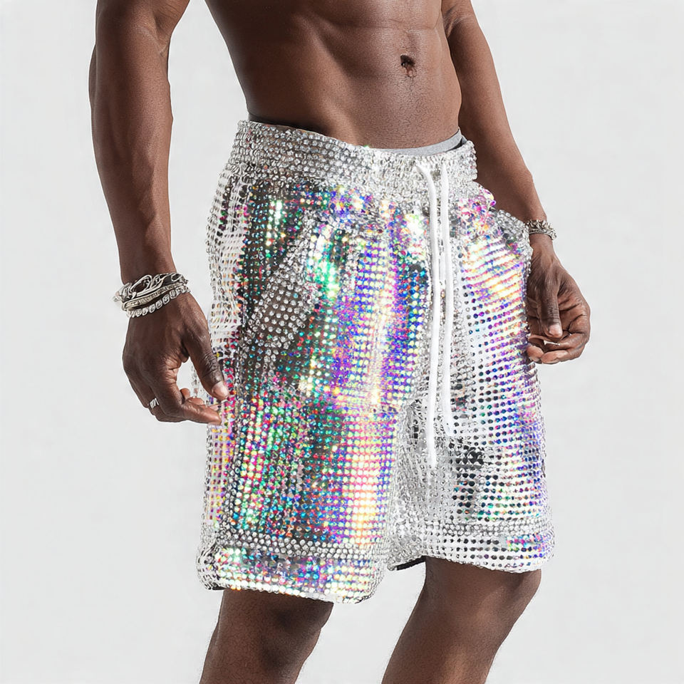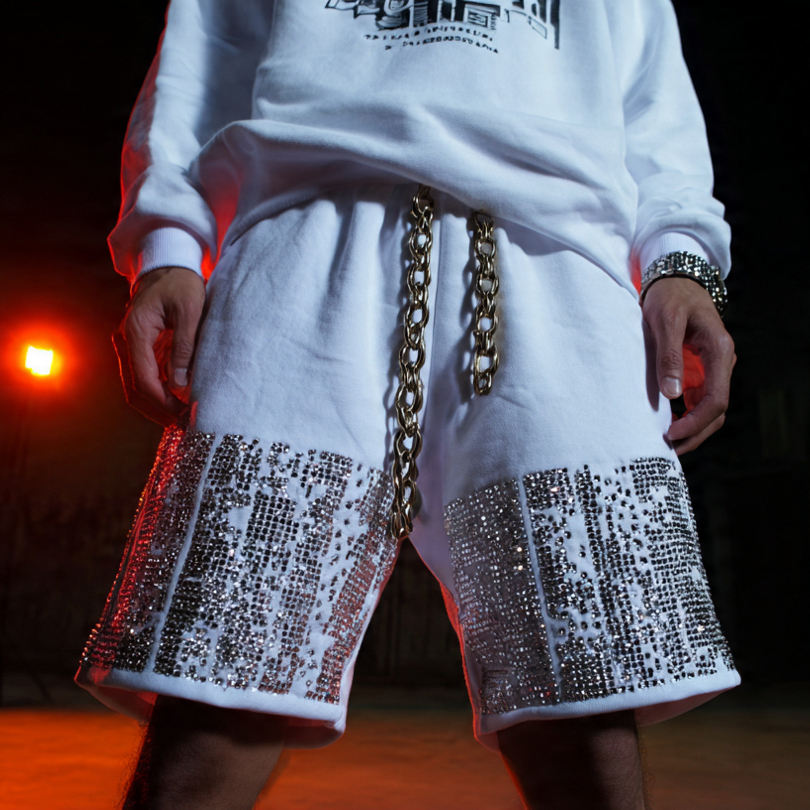 Palabras clave:Pantalones Cortos Jogger con Pedrería para Hombre