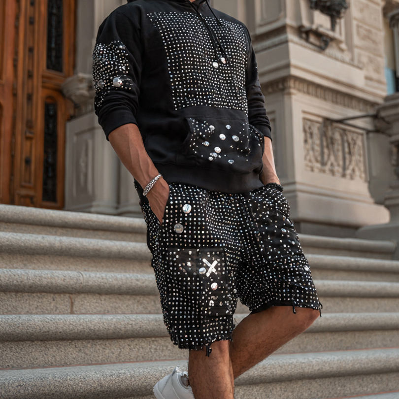 Nombre del producto:Pantalones Cortos de Chándal con Pedrería para Hombre