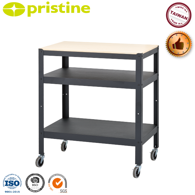 Carrito de Almacenamiento Metálico de 3 Niveles con Ruedas, Tapa de Madera y Plástico, Organizador para el Hogar, Mueble de Plataforma DIY, Venta OEM