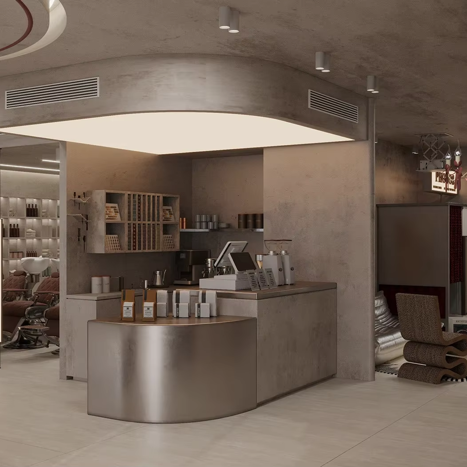 Mostrador de Recepción para Salón de Belleza, Moderno y Ecológico, con Iluminación LED, Venta al Por Mayor, Mostrador de Exhibición para Barbería, Uso Comercial