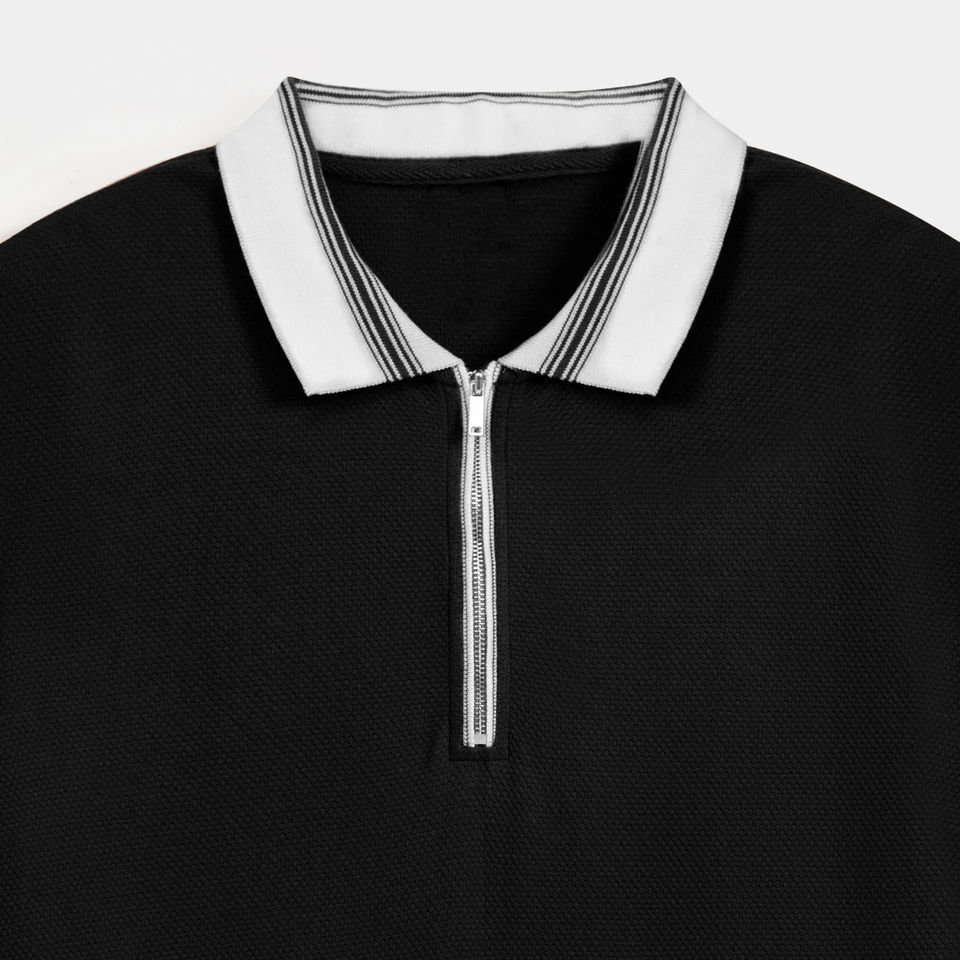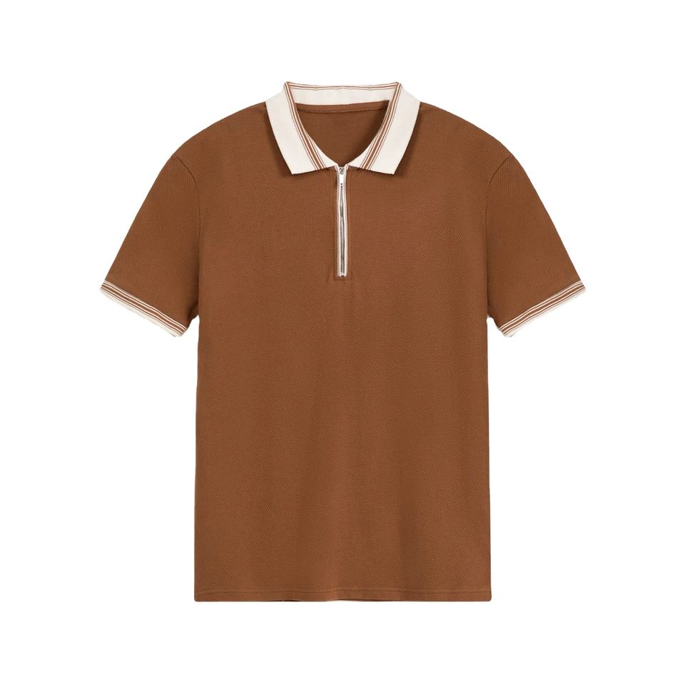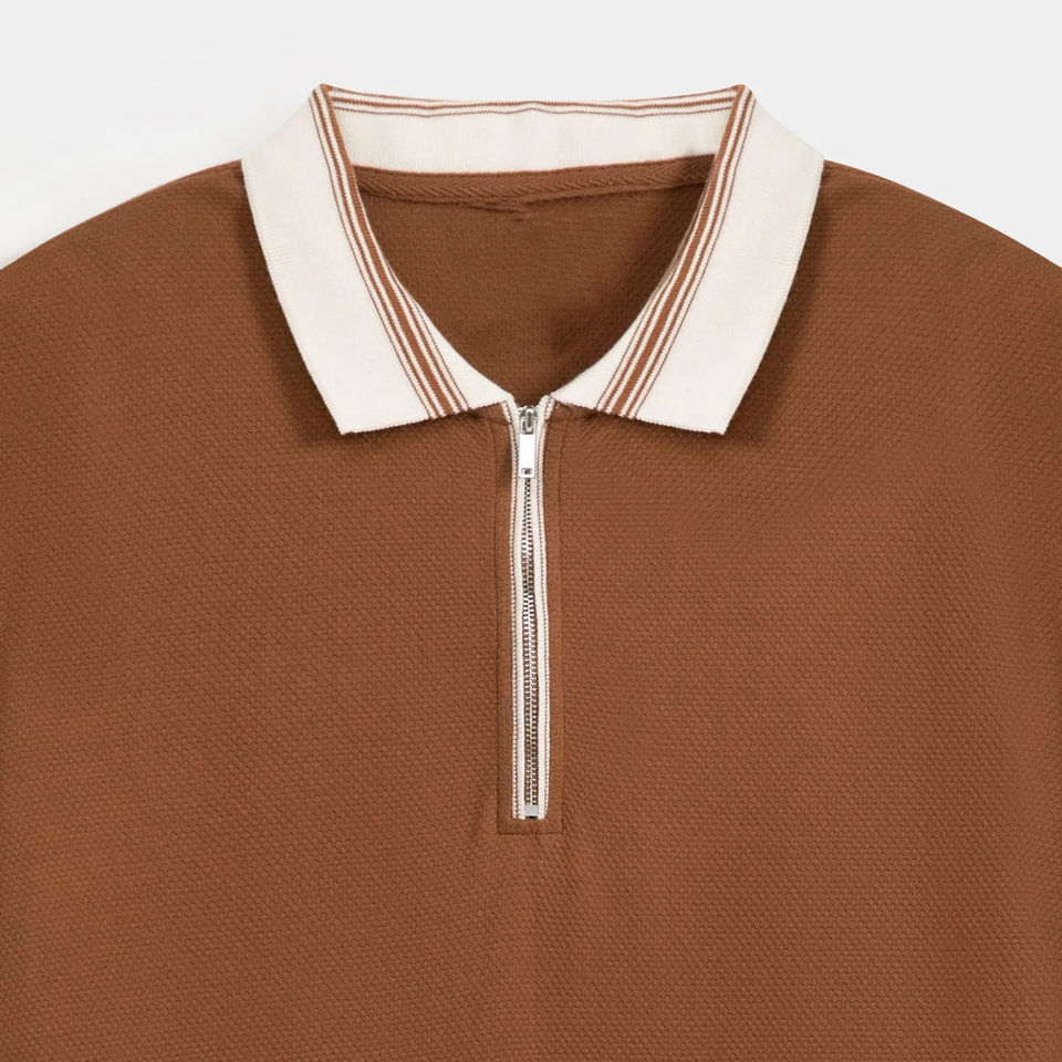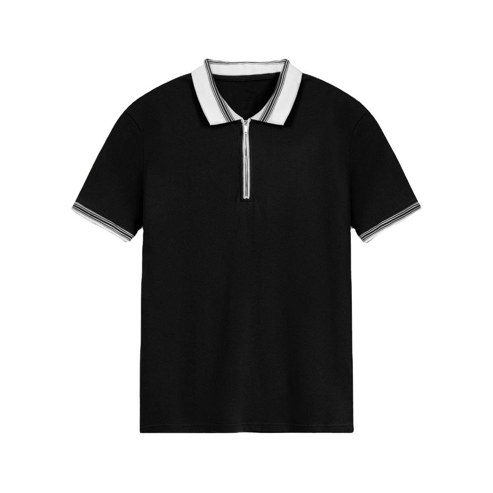Servicio OEM Disponible, Venta al Por Mayor de Camisetas Polo Básicas de Manga Corta para Hombre con Cuello en Contraste y Cierre de Cremallera, Casual