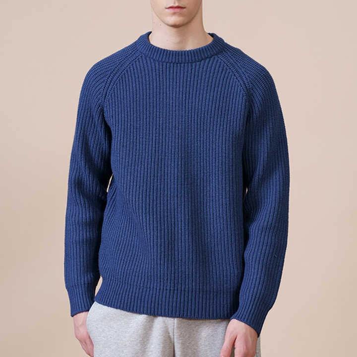 Servicio OEM, Suéter de Punto Grueso de Color Sólido, Cuello Redondo, para Hombre, Transpirable, Personalizado, de Alta Calidad, 100% Algodón, en Oferta
