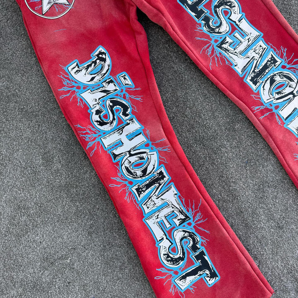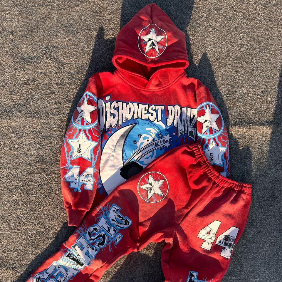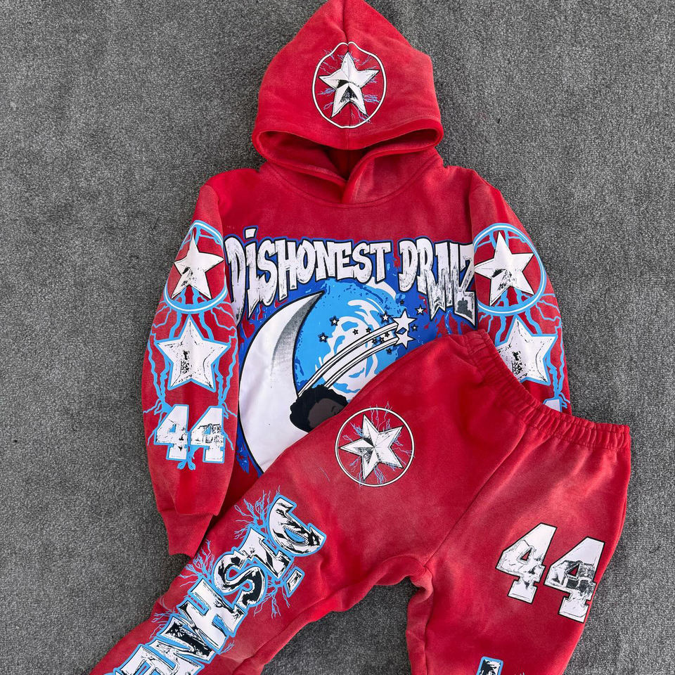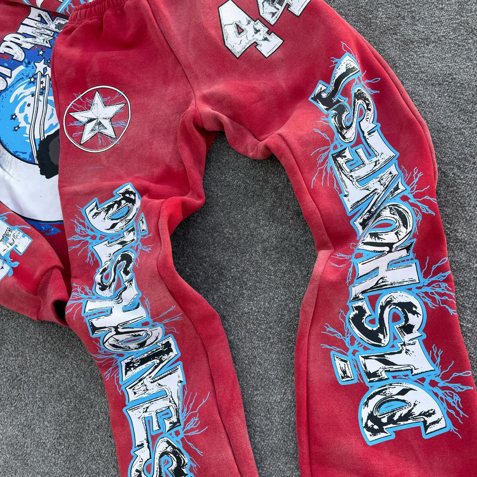 Conjunto de 2 piezas de chándal pesado con capucha para hombre personalizado con servicio OEM, conjunto de pantalones de chándal acampanados y Sudadera con capucha con lavado ácido estampado