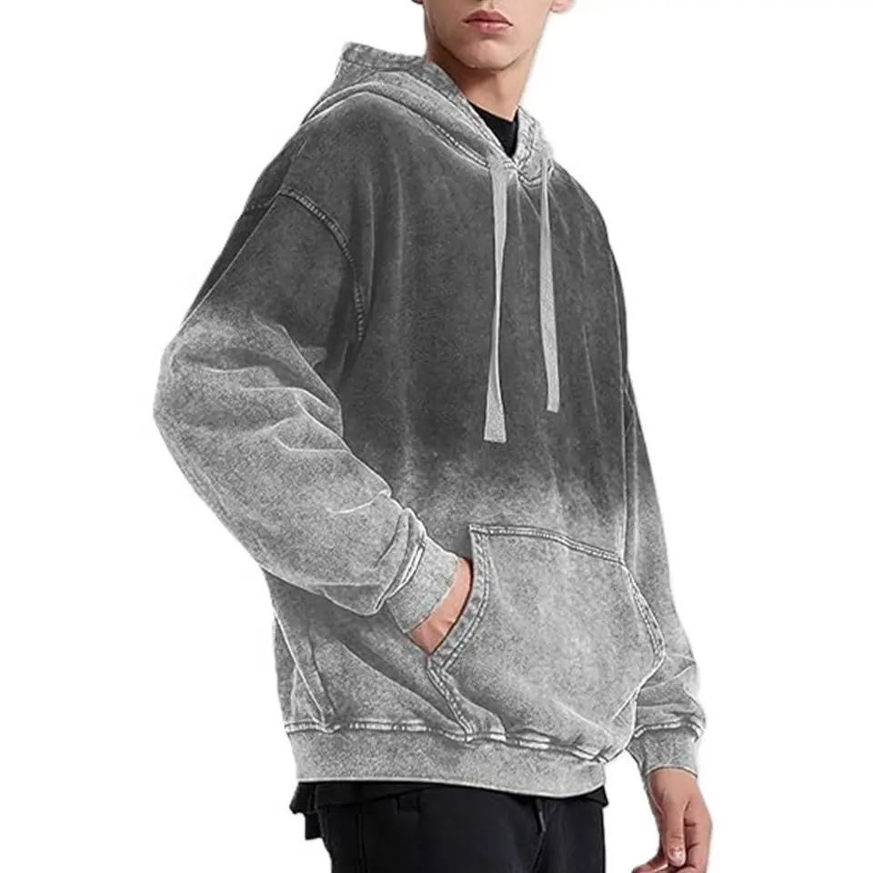 Sudadera con capucha de lavado ácido para hombre de algodón pesado de gran tamaño personalizada con servicio OEM