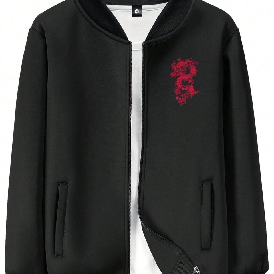 Servicio OEM, Chaqueta Bomber Personalizada con Estampado de Calavera en Relieve, Cuello Alto, Transpirable, Estilo Urbano, Resistente al Viento, con Cierre