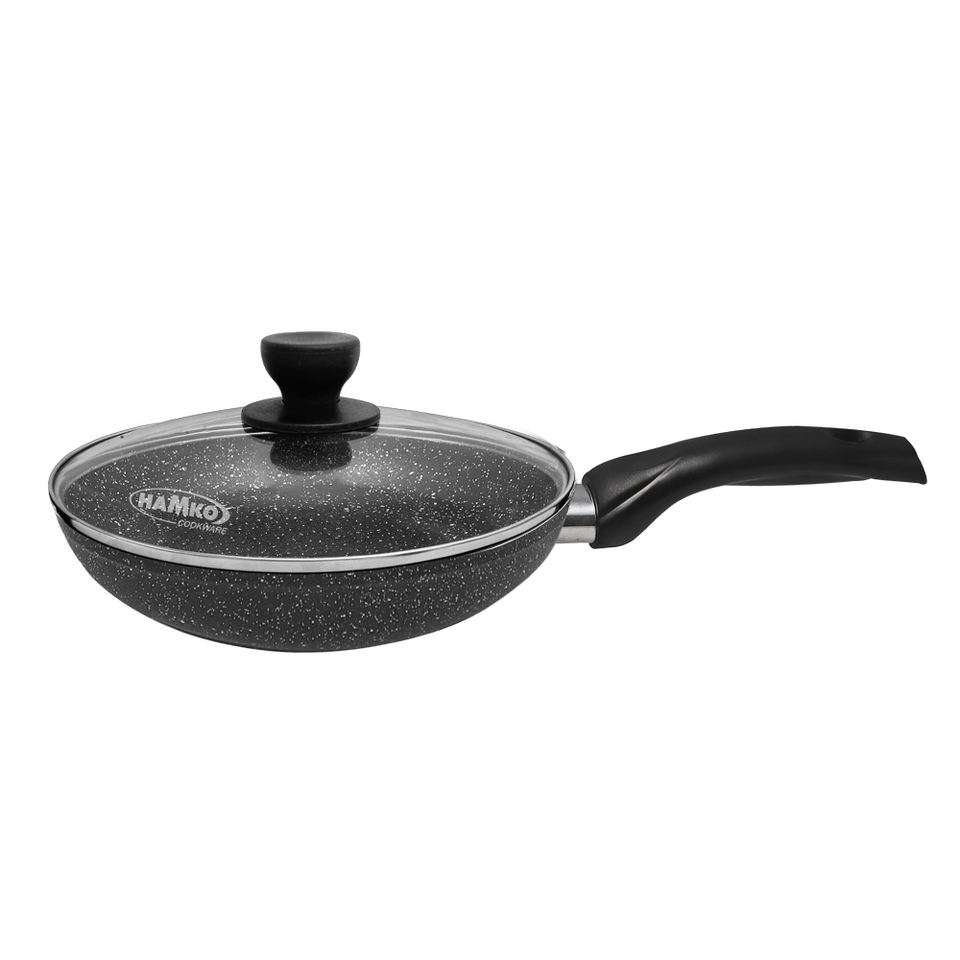 Servicio de OEM sartén profunda de fondo de inducción antiadherente de aluminio personalizada con tapa de vidrio 24 cm IB del proveedor de Bangladesh