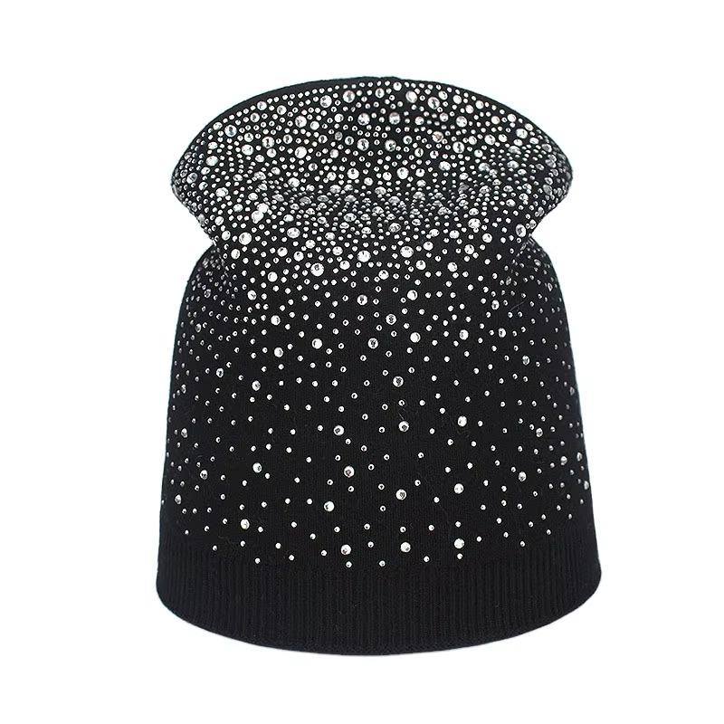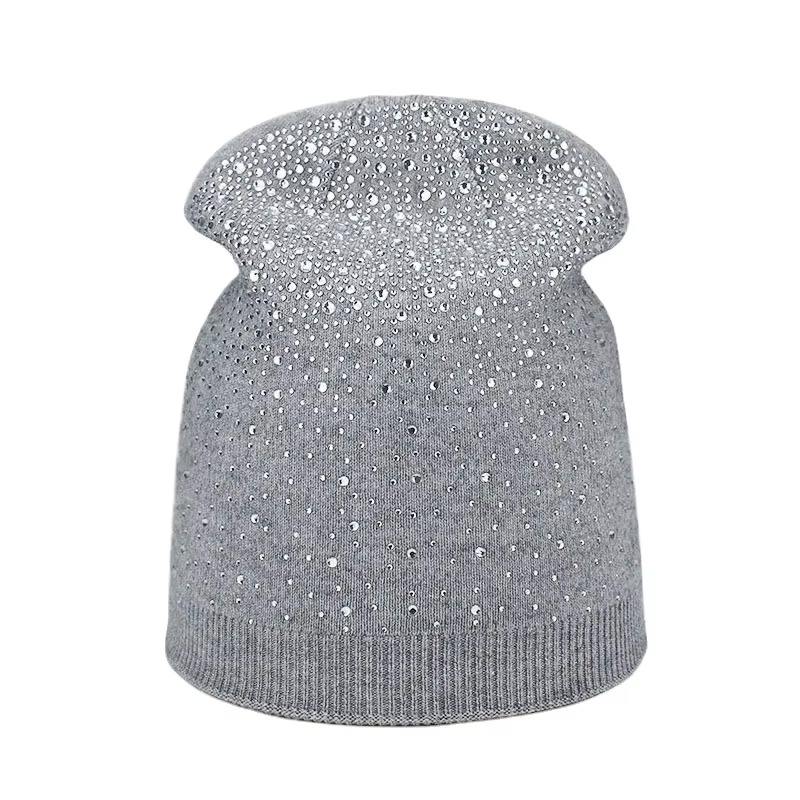 Servicio OEM, gorros personalizados de alta calidad, gorros para mujer, moda de invierno, diseño de diamantes de imitación, gorro impermeable con imagen elegante