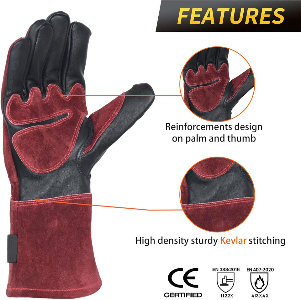 Guantes de soldador de alta calidad para protección de manos, de cuero vacuno, para soldadura TIG y uso general, servicio OEM.