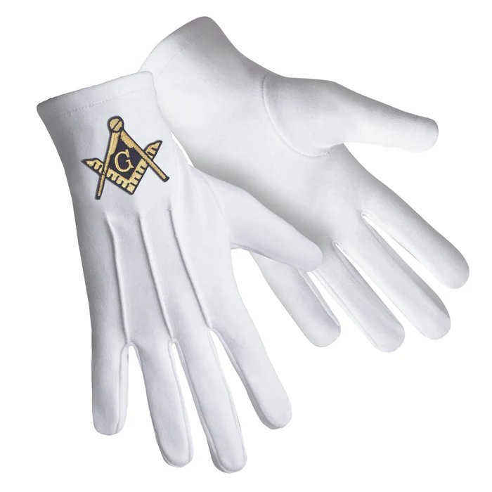 OEM Service Masters Mason Blue Lodge Guantes Cuadrado y Brújula Algodón Blanco Masonic Regalia Guantes