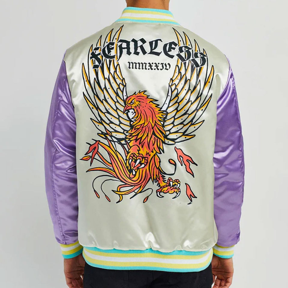 Chaqueta bordada de satén personalizada de estilo callejero para hombre, chaquetas universitarias de béisbol impermeables de peso pesado, servicio OEM