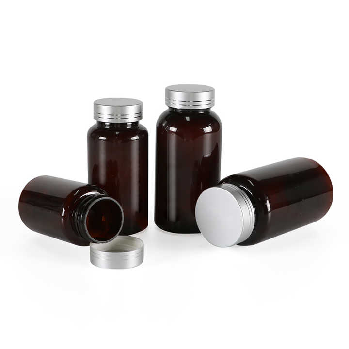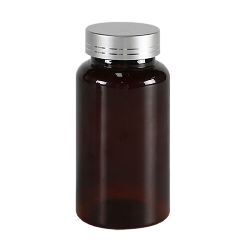 Servicio OEM Botella redonda de PET 150ml 250ml Color personalizado transparente con tapas galvanizadas doradas en aerosol Grado alimenticio para píldoras de hierro