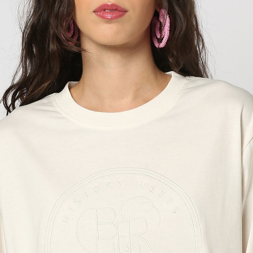 Servicio OEM, Camisetas de Algodón Negras para Mujer, Cuello Redondo, Bordado de Alta Calidad, Impresión Personalizada