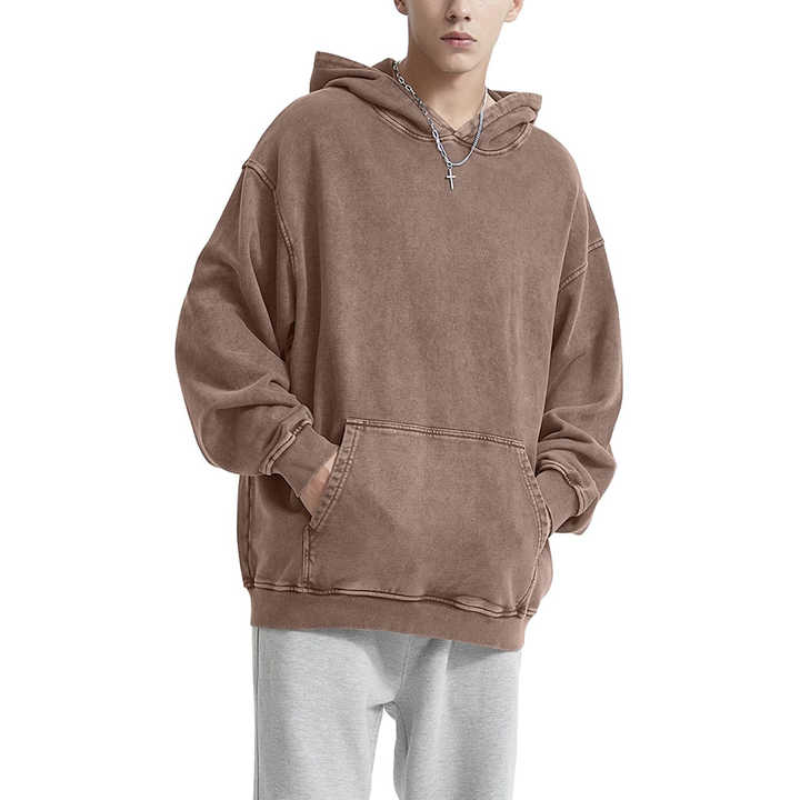 Servicio OEM de moda personalizada Venta caliente Ropa de hombre Tallas grandes Oversize Lavado ácido Sudadera con capucha Algodón Estilo térmico Lavado ácido Sudadera con capucha