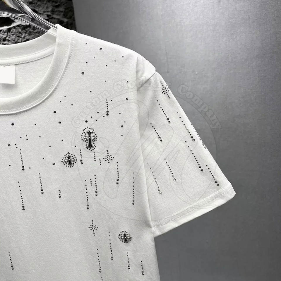 Servicio OEM, Precio al por Mayor, Camiseta con Pedrería para Hombre, Nuevo Estilo, Camiseta con Pedrería Personalizada para Hombre en Venta