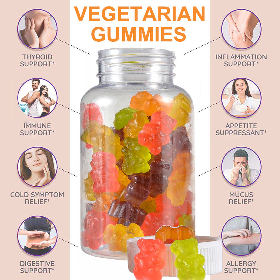 Servicio OEM, Marca Privada, Gomitas Multivitamínicas Vegetarianas de Colores Personalizados
