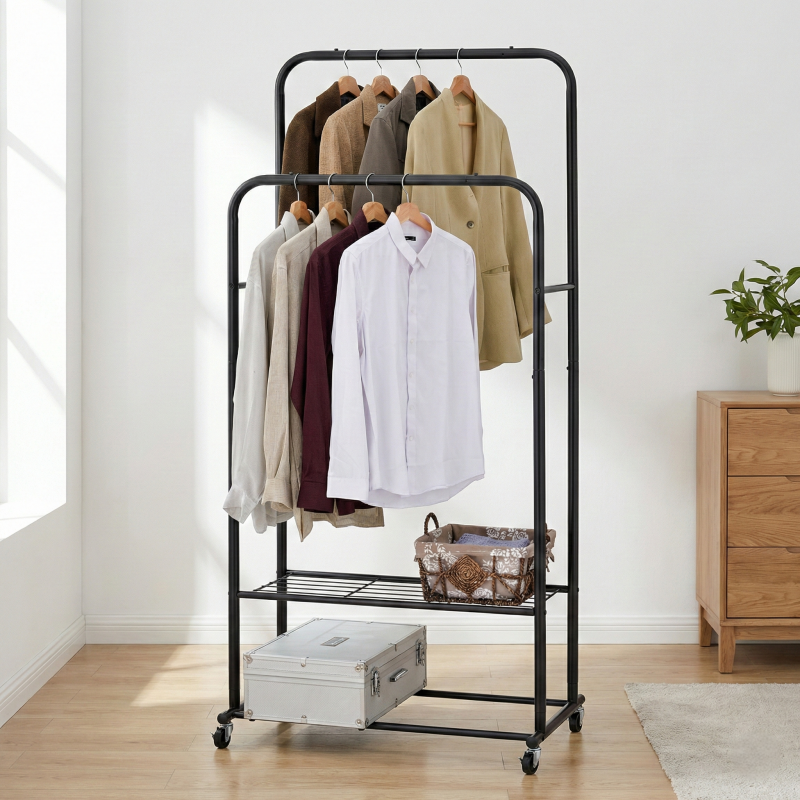 Estantes de Exhibición de Ropa de Metal Modernos de un Solo Nivel, No Plegables, Ecológicos, Multifuncionales, con Recubrimiento en Polvo, para Almacenamiento en el Hogar