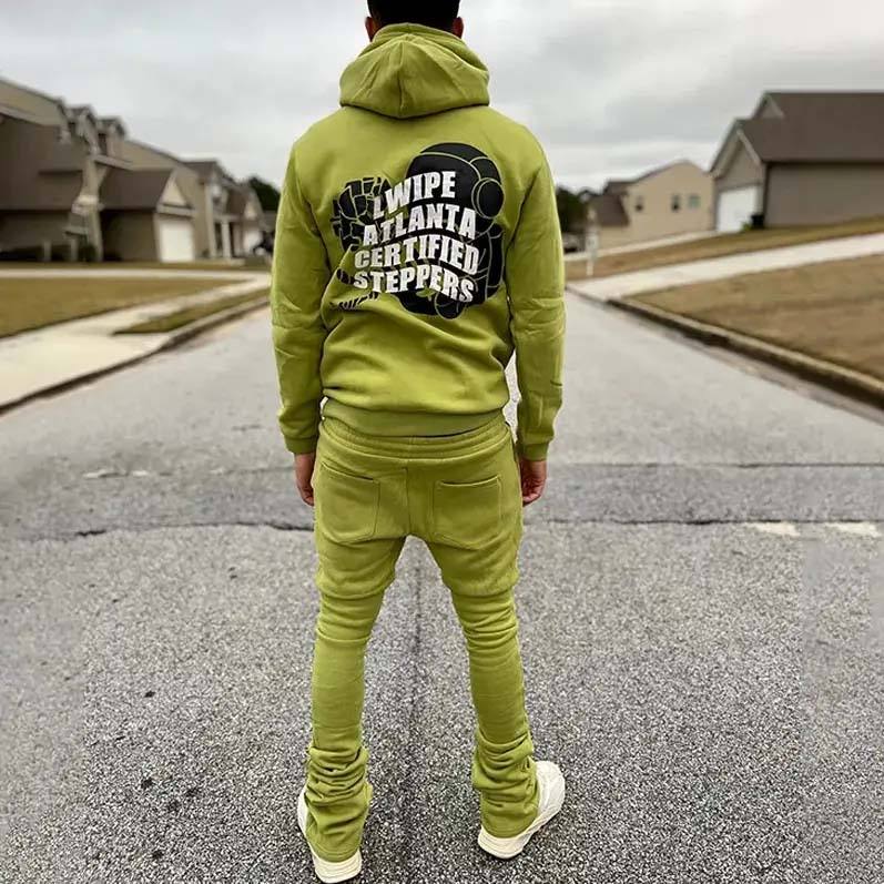Chándales de sudor apilados OEM logotipo personalizado de alta calidad hombres de dos piezas de algodón chándal conjunto de pantalones apilados