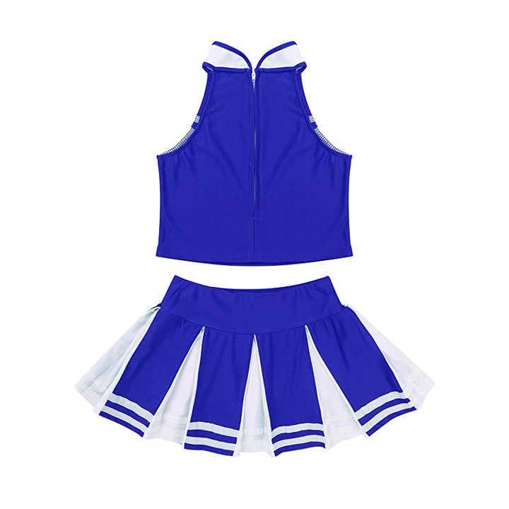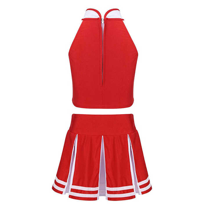 OEM sublimación uniformes de porristas personalizado Spandex disfraces de punto cuello alto Crop Tank Top y cuchillo Falda plisada para niñas