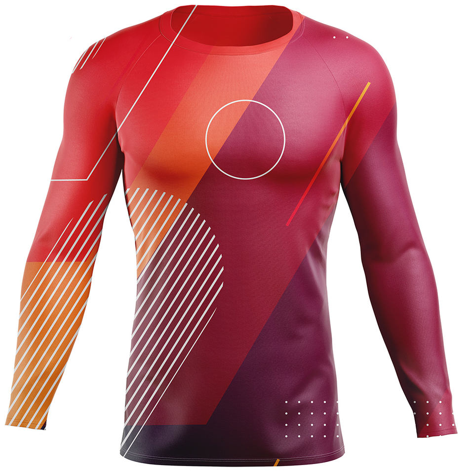Camiseta de Compresión Sublimada OEM para Hombre, Protección UV, Manga Larga, Secado Rápido, Transpirable, Antibacteriana, Spandex/Poliéster