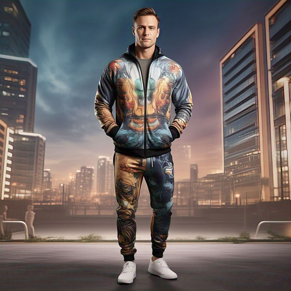Palabras clave:Conjunto de sudadera y pantalón de chándal para hombre con sublimación