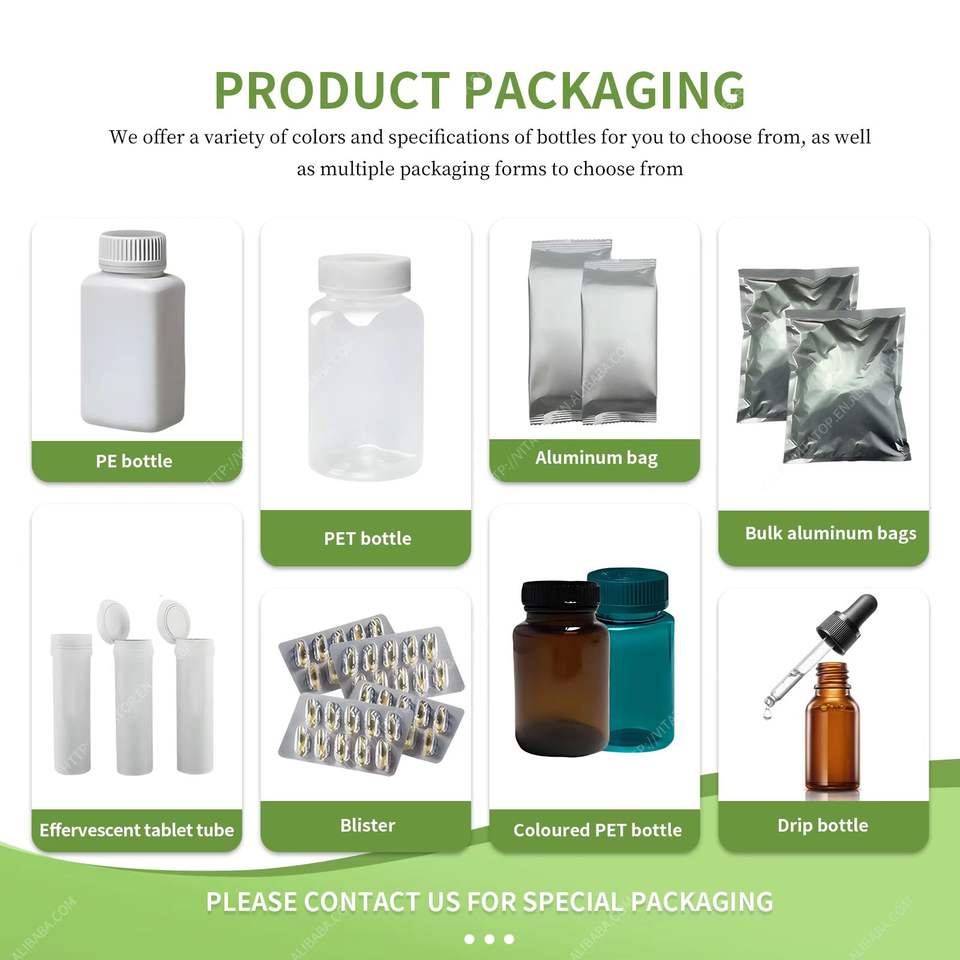 Paquete:A granel, botellas, blísteres o según los requisitos del cliente