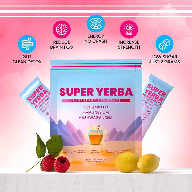 OEM Super Yerba Mate en Polvo para Aumentar la Energía, Incluye Probióticos, Vitaminas y Suplementos Herbales en Polvo