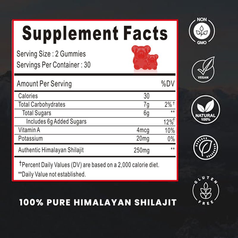 Vitamina A, Potasio y auténtico EXTRACTO DE Shialjit del HimalayaIngrediente principal