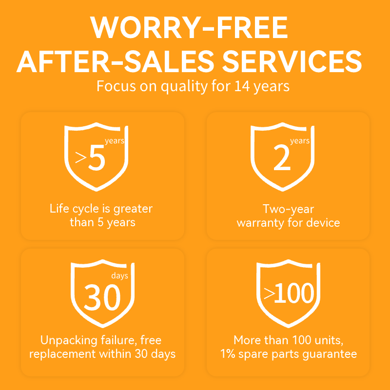 Servicio post-venta:Centro de llamadas y en línea de apoyo técnico, La capacitación en el lugar de inspección y, repuestos gratis, Devolución y reemplazo, Reparación