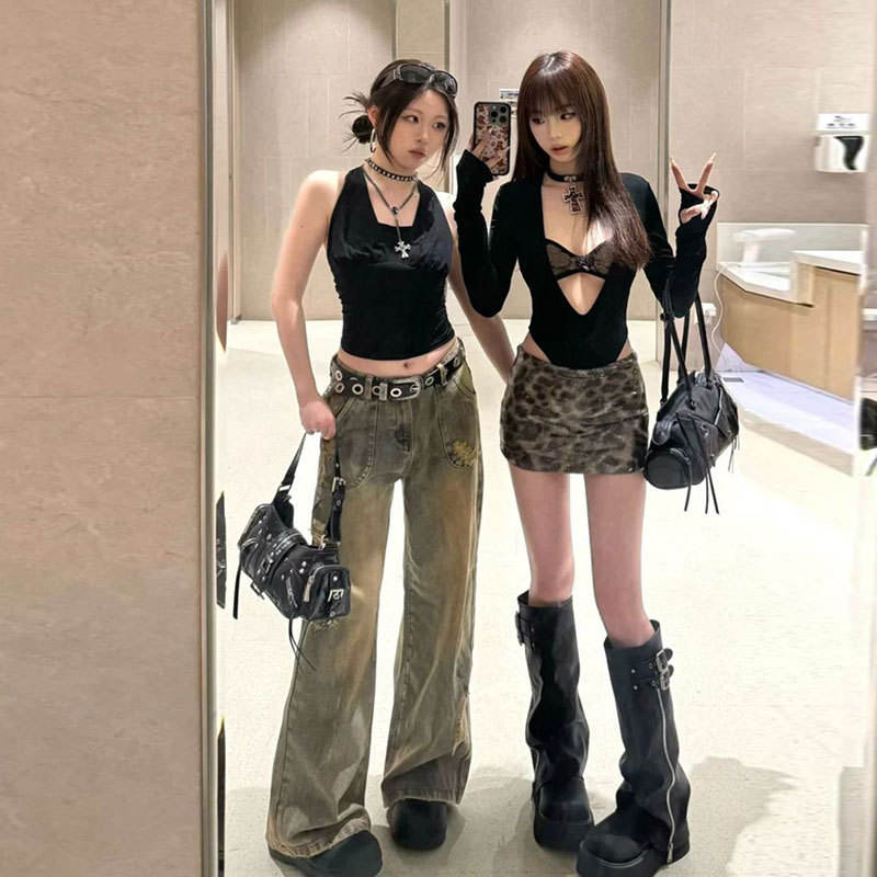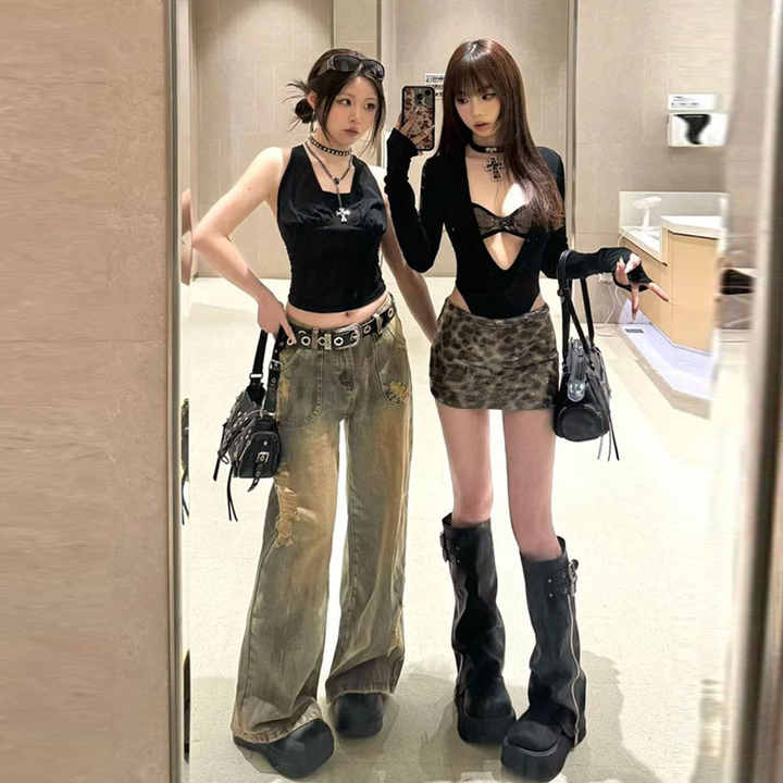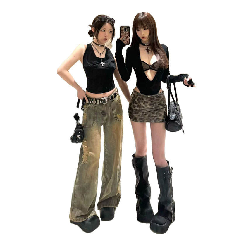 La tendencia OEM debe tener pantalones vaqueros desgastados degradados con piernas sueltas y anchas para crear un estilo informal y fresco