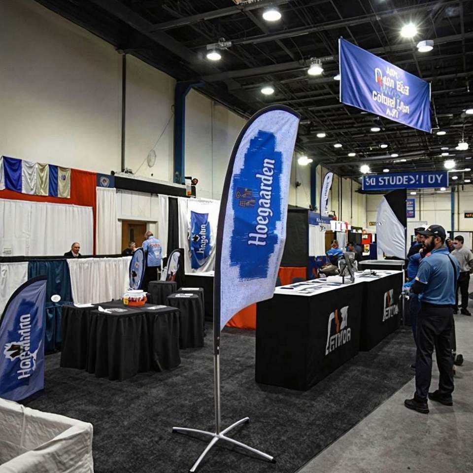 Bandera Curva de Poliéster Tejido de Dos Capas OEM de 2 Metros con Base Cruzada de 1.5 kg, Diseño Elegante, Categoría de Producto: Banderas