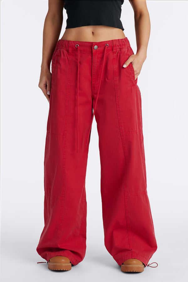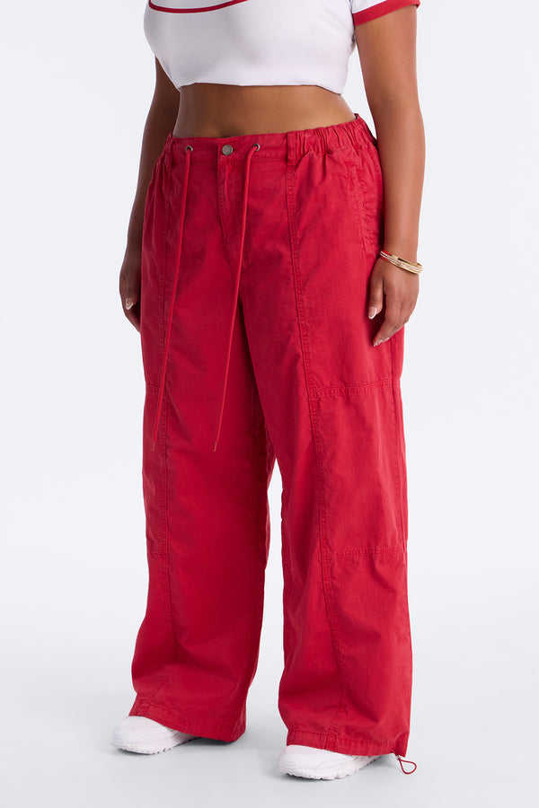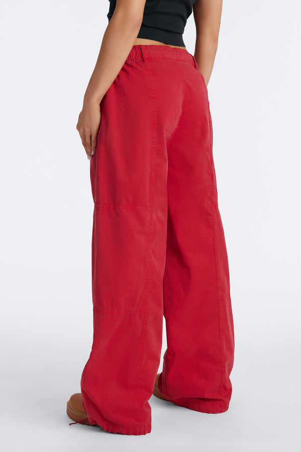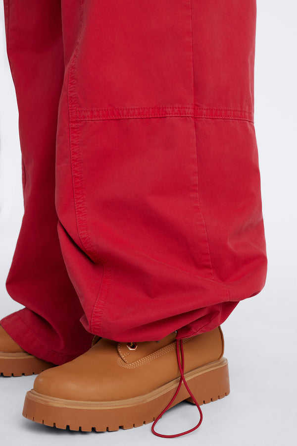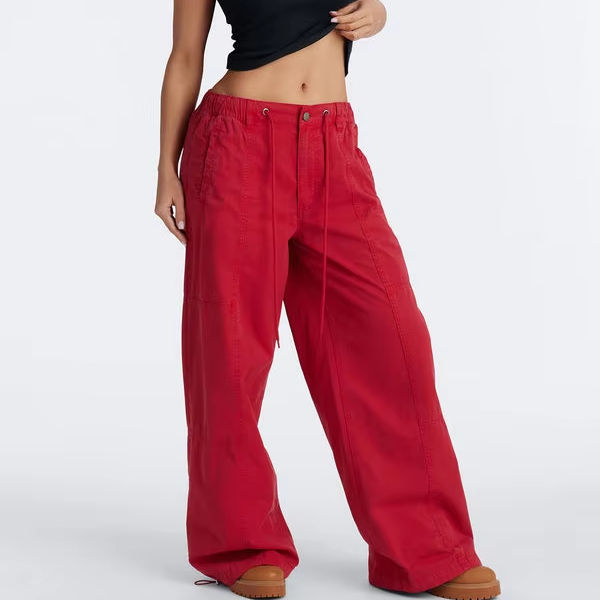 Pantalones Utilitarios Unisex OEM de Pierna Ancha con Cordón, Rojos Lavados, Estilo Casual Urbano, Proveedor de Pantalones para Hombre