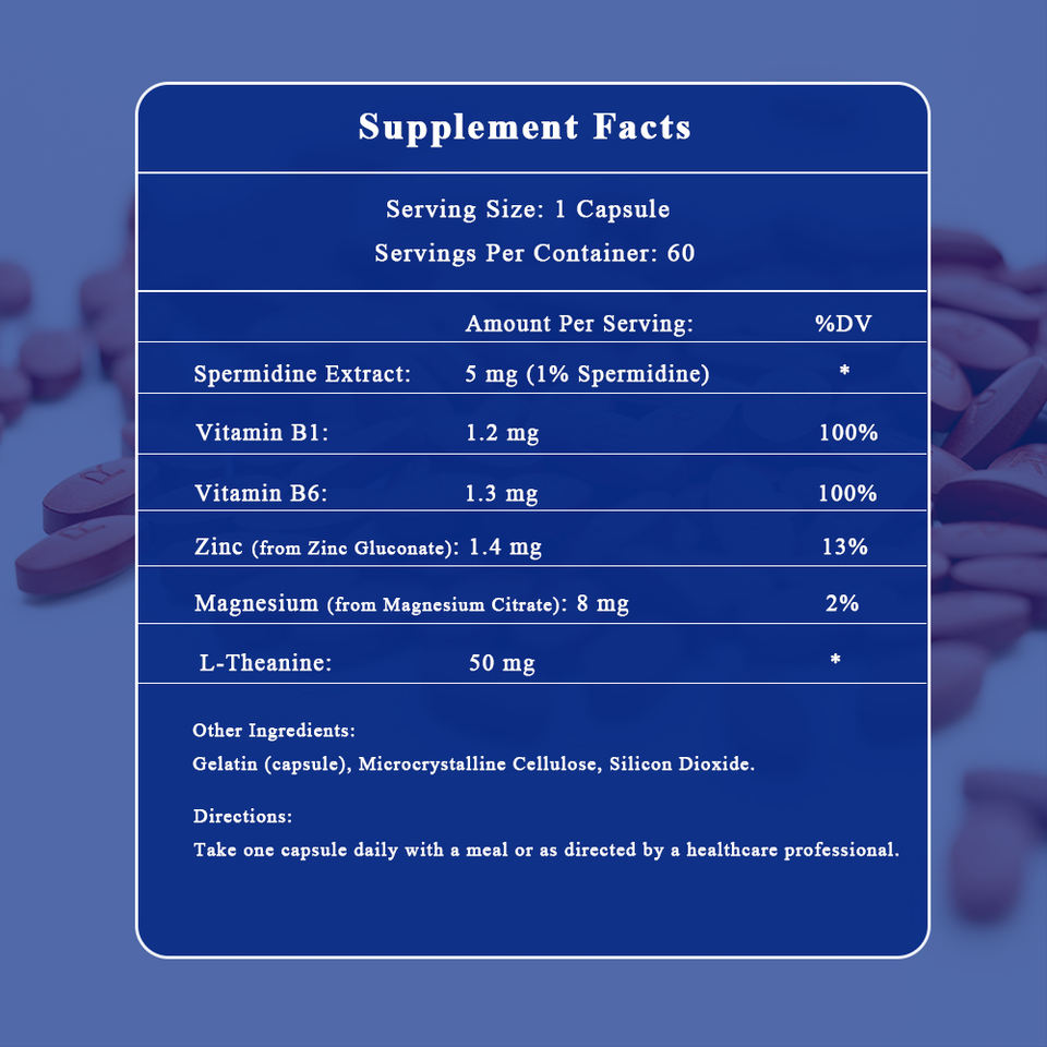 Ingrediente principal:Extracto de espermidina, L-teanina, Magnesio