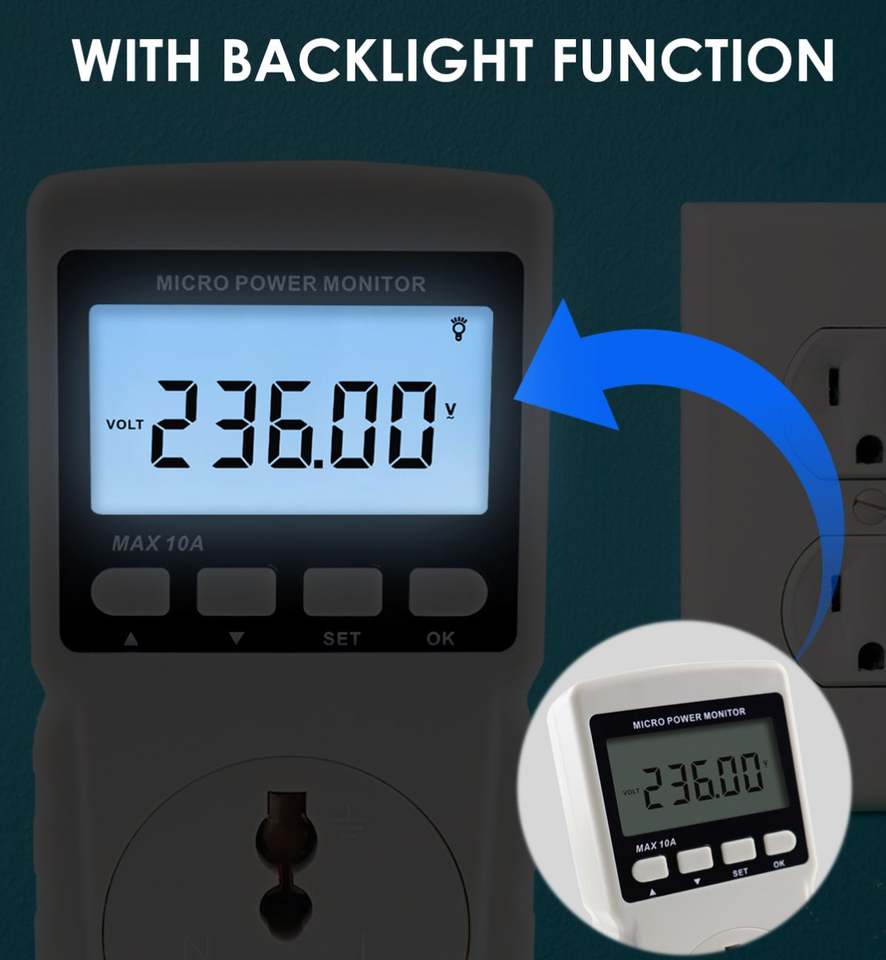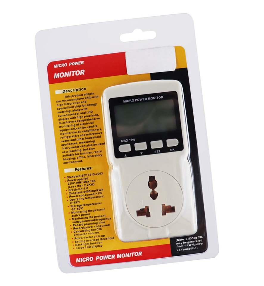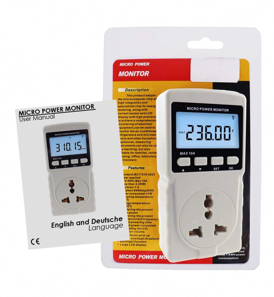 Medidor de Energía Digital con Diseño de Enchufe, Pantalla LCD, Alta Calidad, Función de Alarma, Medidor de Consumo de Energía OEM