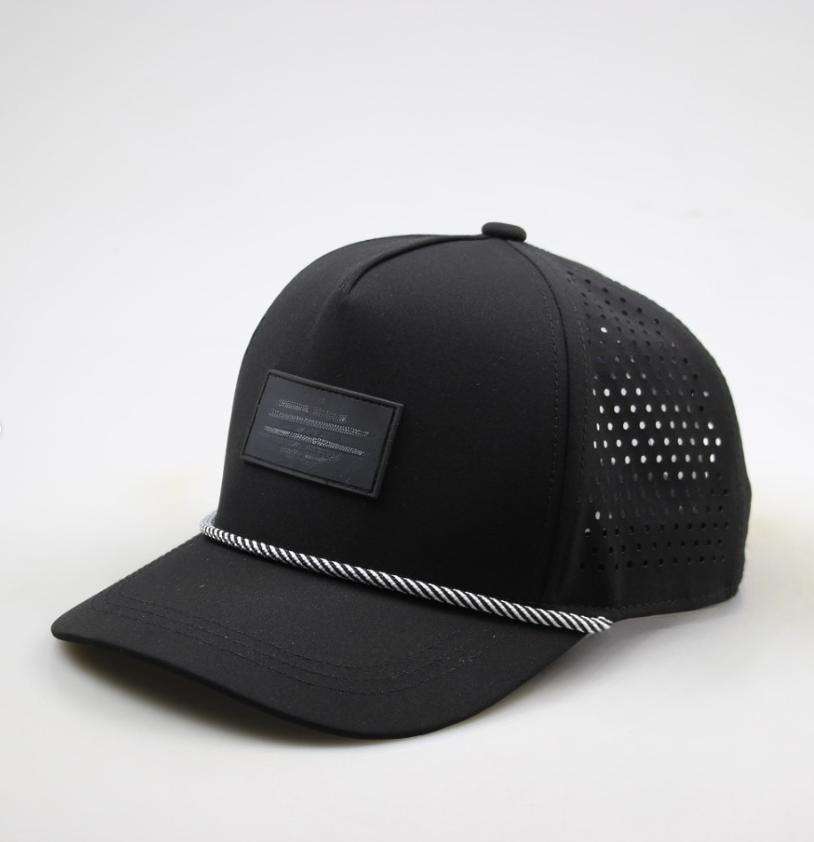 OEM, venta al por mayor, sombrero de golf de lona personalizado, adorno de cuerda, poliéster impermeable, ventilación cortada con láser para deportes al aire libre, uso de rendimiento