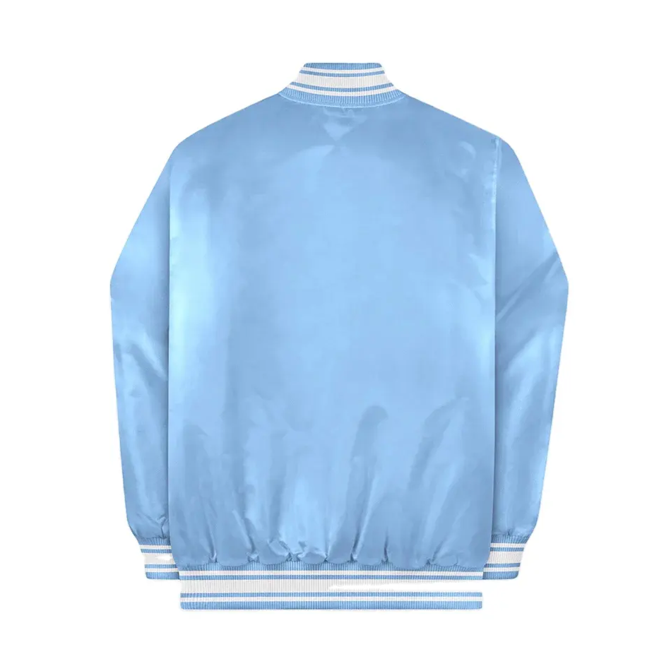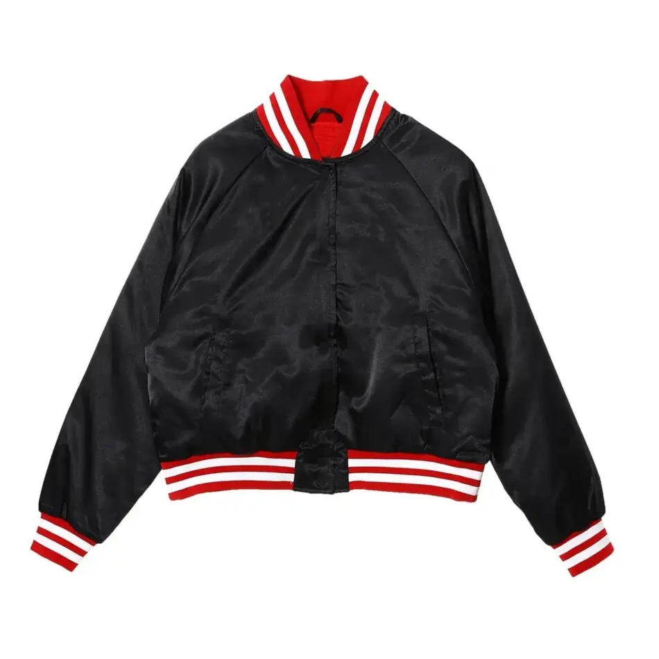 OEM al por mayor logotipo personalizado bordado a prueba de viento invierno satén Varsity chaqueta nuevo estilo de moda para hombres Unisex algodón cremallera estampado