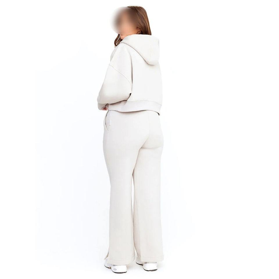Conjunto de Dos Piezas de Chándal de Algodón OEM para Invierno, Color Sólido, Cintura Alta, Pantalones Cortos Acampanados, Personalizado para Mujer