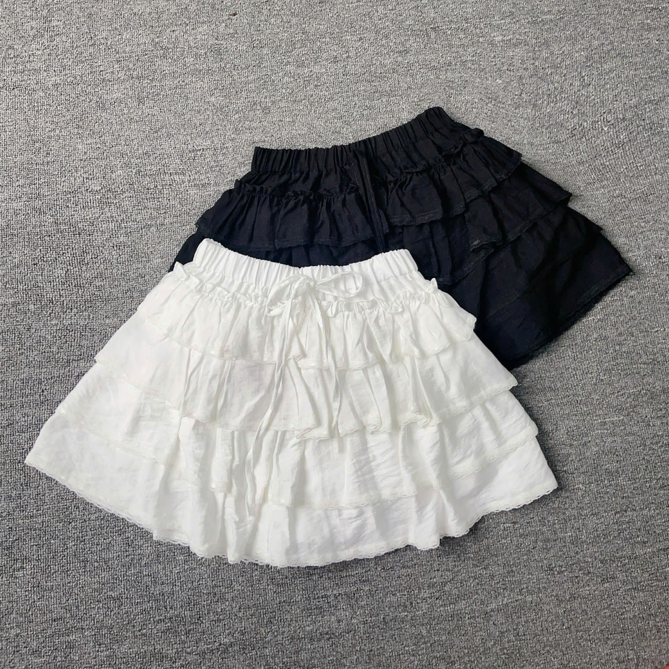 Conjunto de 2 piezas de punto OEM para mujer, moda 2025, Top de manga larga con cuello cuadrado y cordones, minifalda con volantes, venta al por mayor directa de fábrica