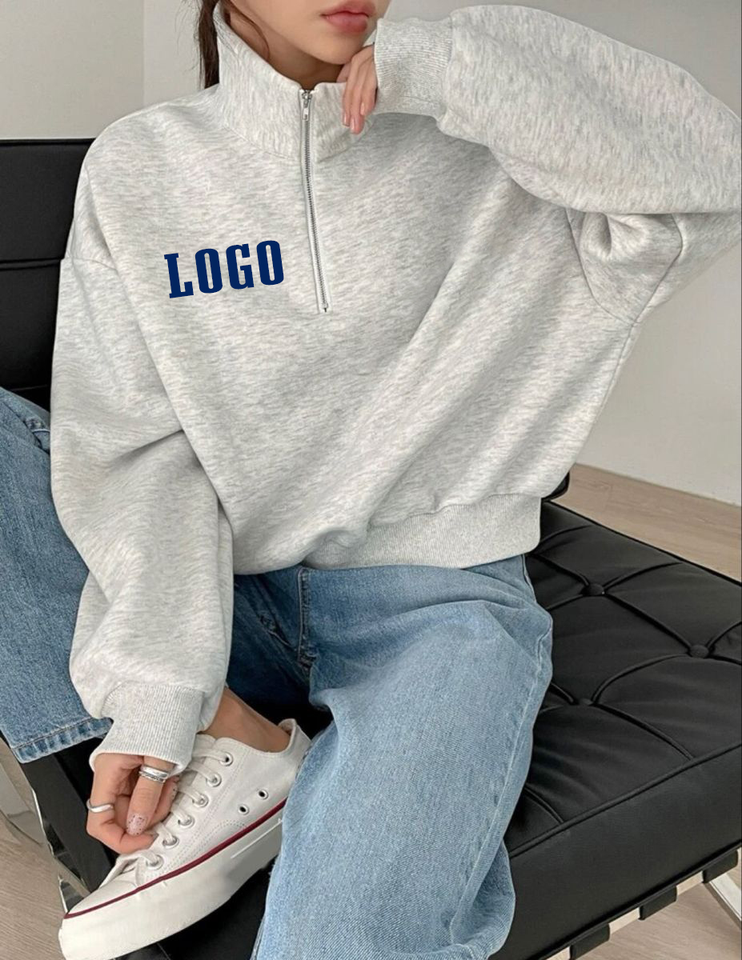Sudadera OEM de gran tamaño con media cremallera para mujer, sudadera elástica de manga larga con soporte bordado, insignia de invierno