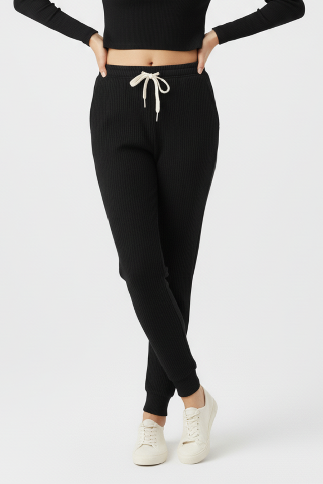 Pantalones Deportivos de Punto Acanalado para Mujer, Cintura Elástica con Cordón, Resistentes al Viento, Transpirables, Suaves, Casuales, para Estar en Casa