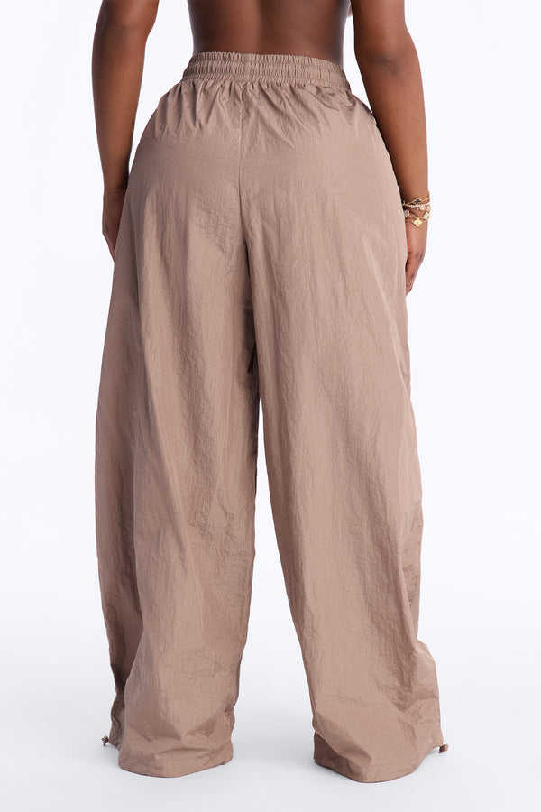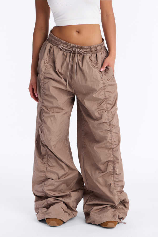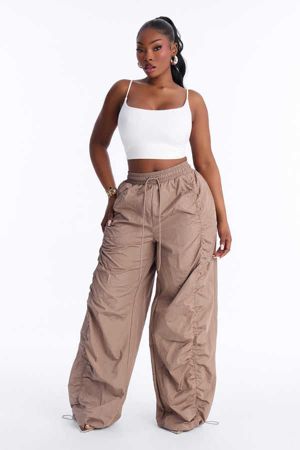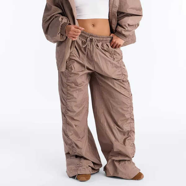 Pantalones de paracaídas anchos de nailon OEM para mujer, con cordón, estilo casual urbano, pantalones para hombre