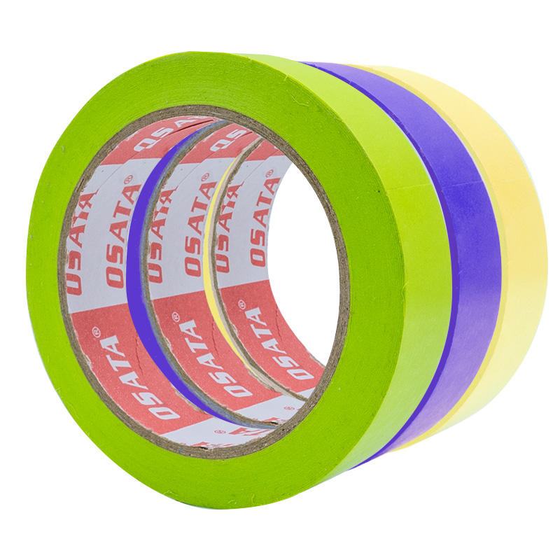 Cinta de Papel Crepé Amarilla para Enmascarar Automóviles, 24 mm x 40 m, de una Sola Cara, Adhesivo de Goma de Bajo Ruido, Fabricada en China para el Cuidado de la Carrocería y la Estética Automotriz
