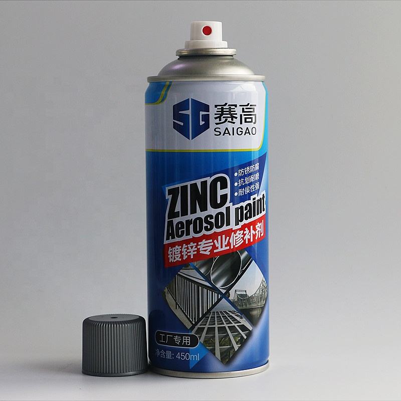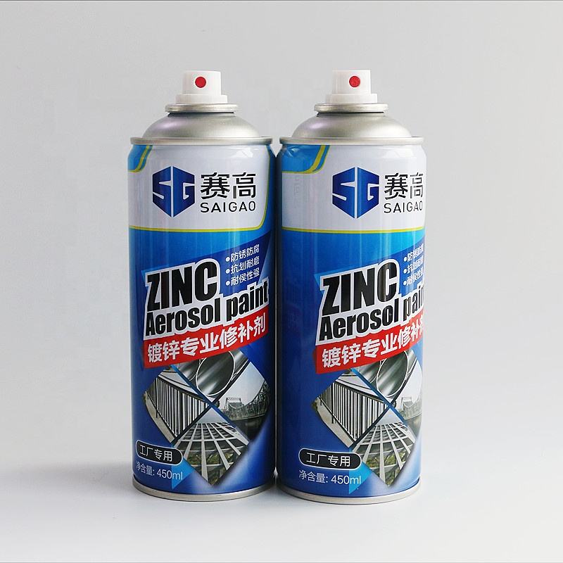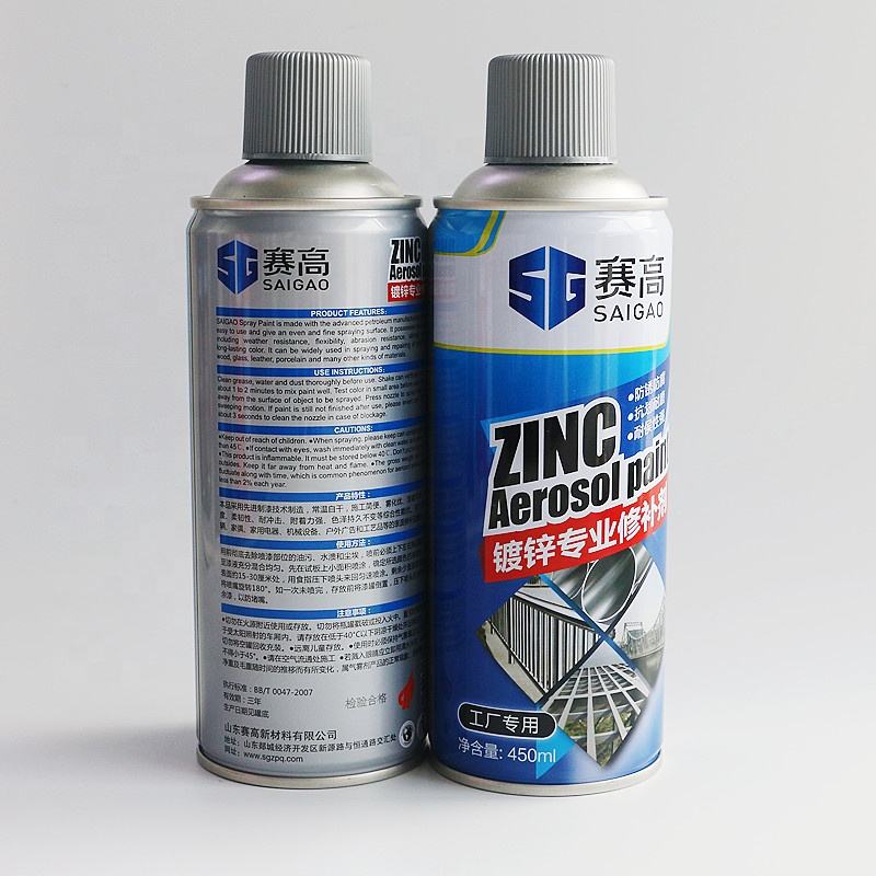 Pintura en aerosol de cubo de galvanizado en frío de zinc OEM, pintura en aerosol de metal de fábrica SAIGAO, 450mL
