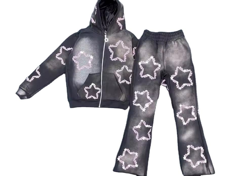 Técnicas:Corte automatizado, Cuentas, Bordado de cuentas de uñas, Ropa teñida, Tinte sencillo, Impreso