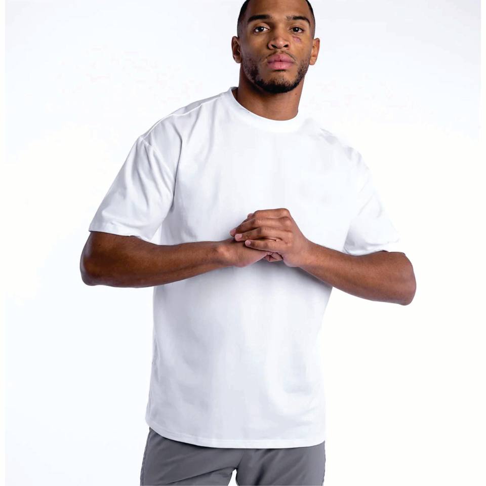 Camisetas OEM estilo boxeo en blanco hechas de algodón pesado 100%, de gran tamaño e ideales para serigrafía con estilo de cuello redondo.