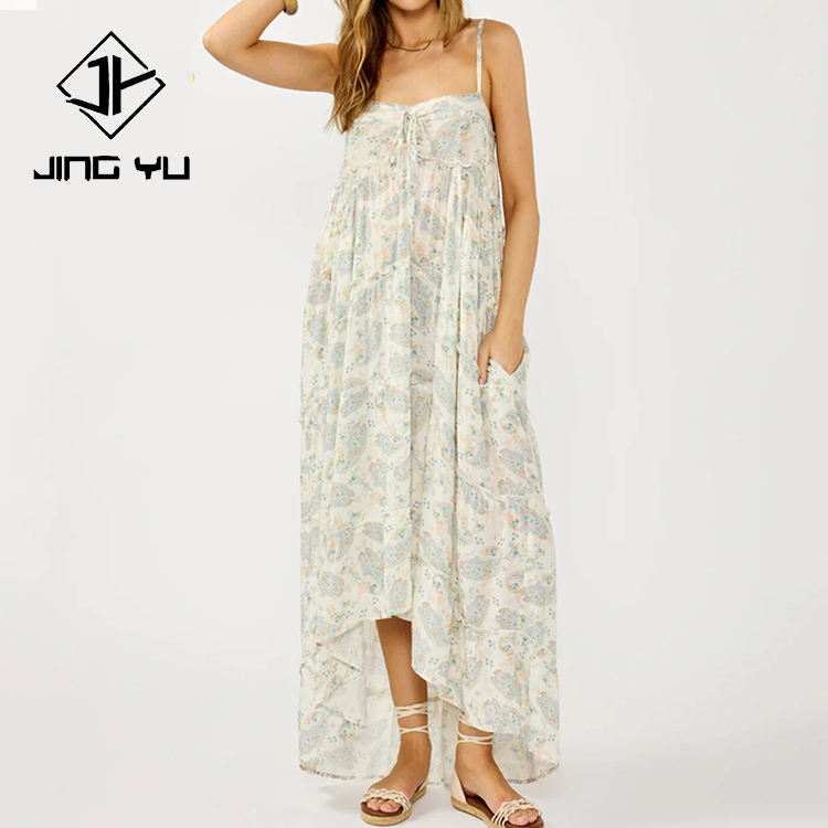 Vestido de playa bohemio personalizado OEM con volantes de varias capas, vestido maxi fluido de alta calidad 100% rayón
