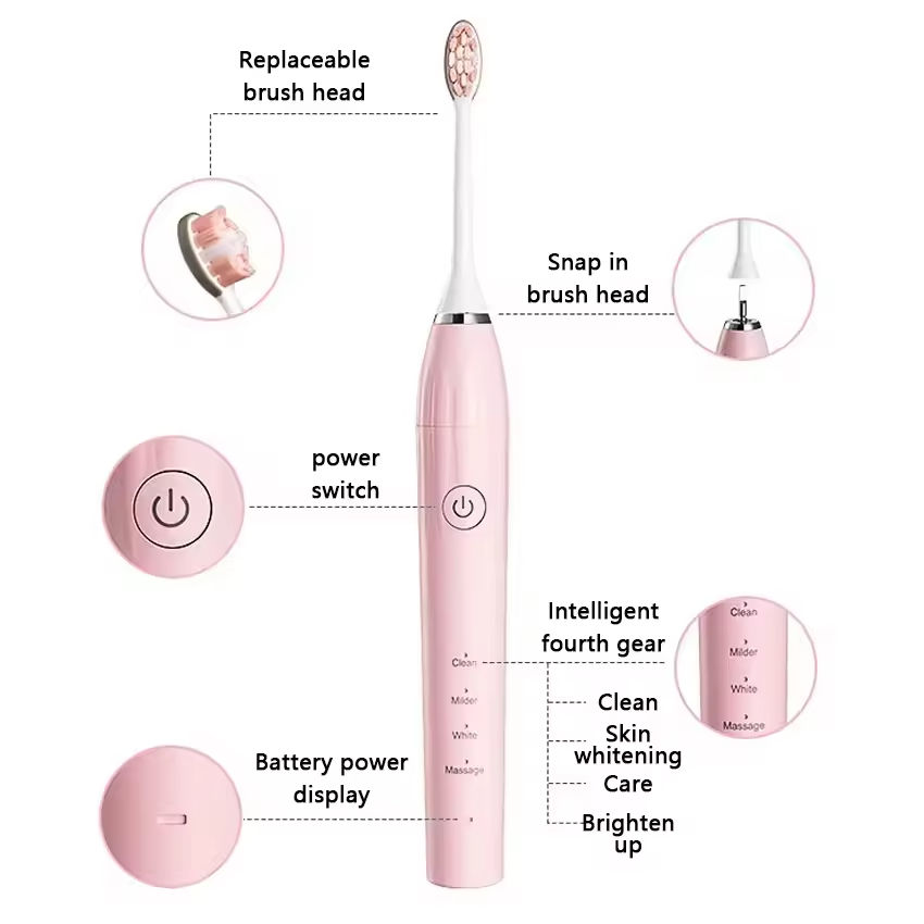 Cepillo de Dientes Eléctrico Ultrasónico Recargable por USB, Resistente al Agua IPX7, Personalizado OEM, Suave para Uso Doméstico