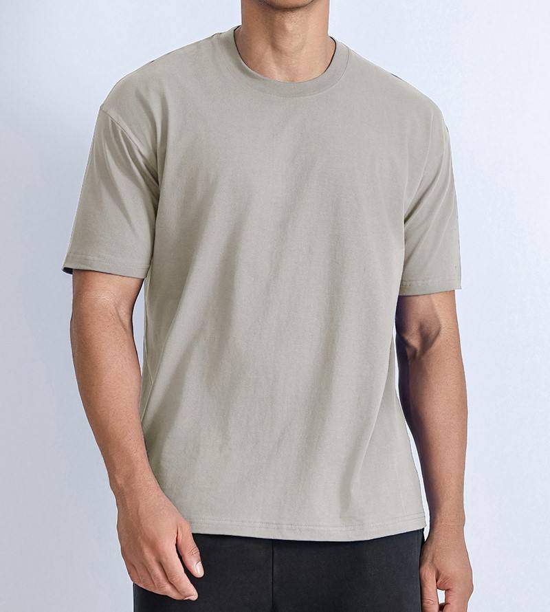 Camiseta de algodón grueso de color sólido personalizada OEM, camiseta cilíndrica con cuello redondo para hombre