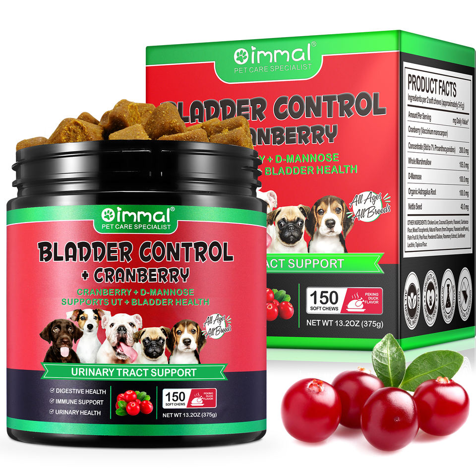 OIMMAL 150 Masticables Blandos para el Control de la Vejiga con Arándano Rojo, Apoyo para la Salud de la Vejiga, Tratamiento para Infecciones Urinarias, Alivio para Infecciones de la Vejiga en Perros
