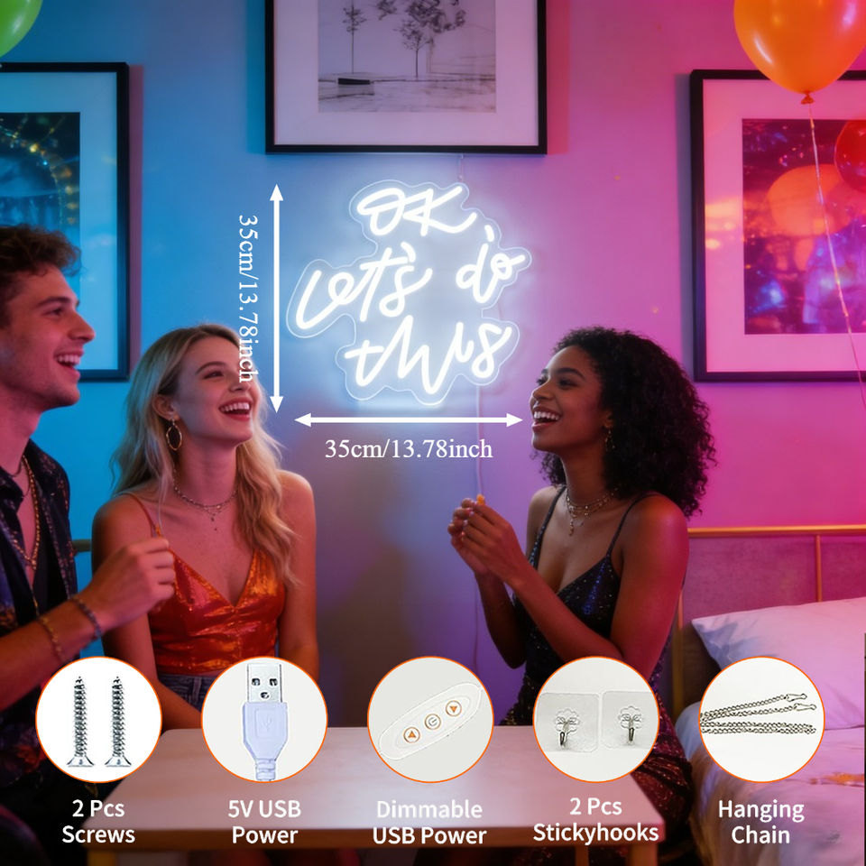 Letrero LED de Neón con la Frase 'OK Let's Do This', Luz Blanca Cálida, Escritura a Mano, Venta al Por Mayor para Decoración de Paredes en Estudios, Gimnasios y Oficinas